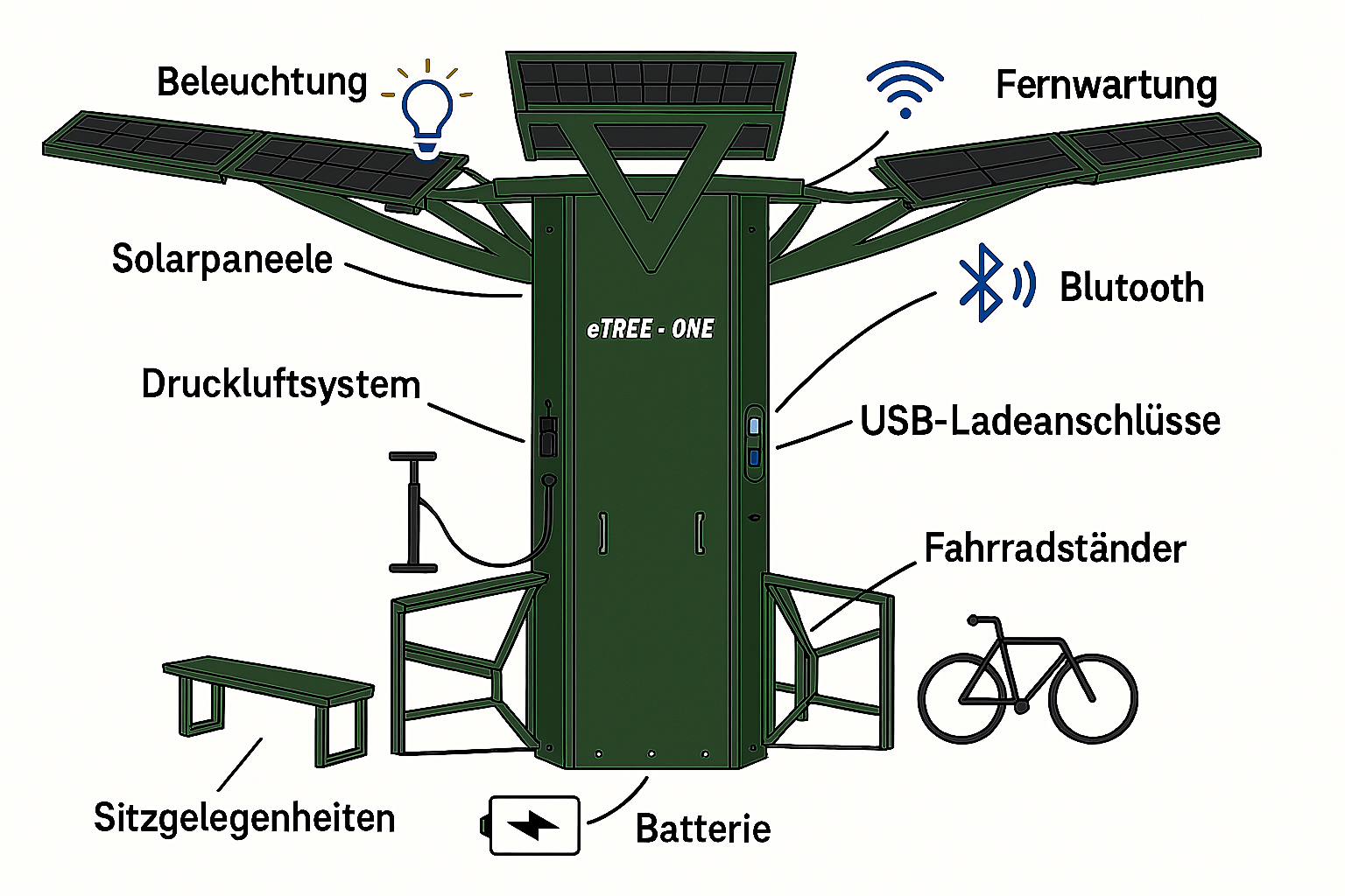 eTree-One ist mehr als nur eine E-Bike-Ladestation – er ist eine zukunftsweisende, netzunabhängige Energiequelle für Kommunen, Unternehmen und öffentliche Plätze.